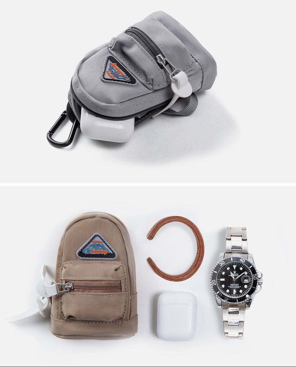 ミニ アウトドア パックチャーム|イヤホン・鍵収納|軽量ナイロン・カラビナ付き